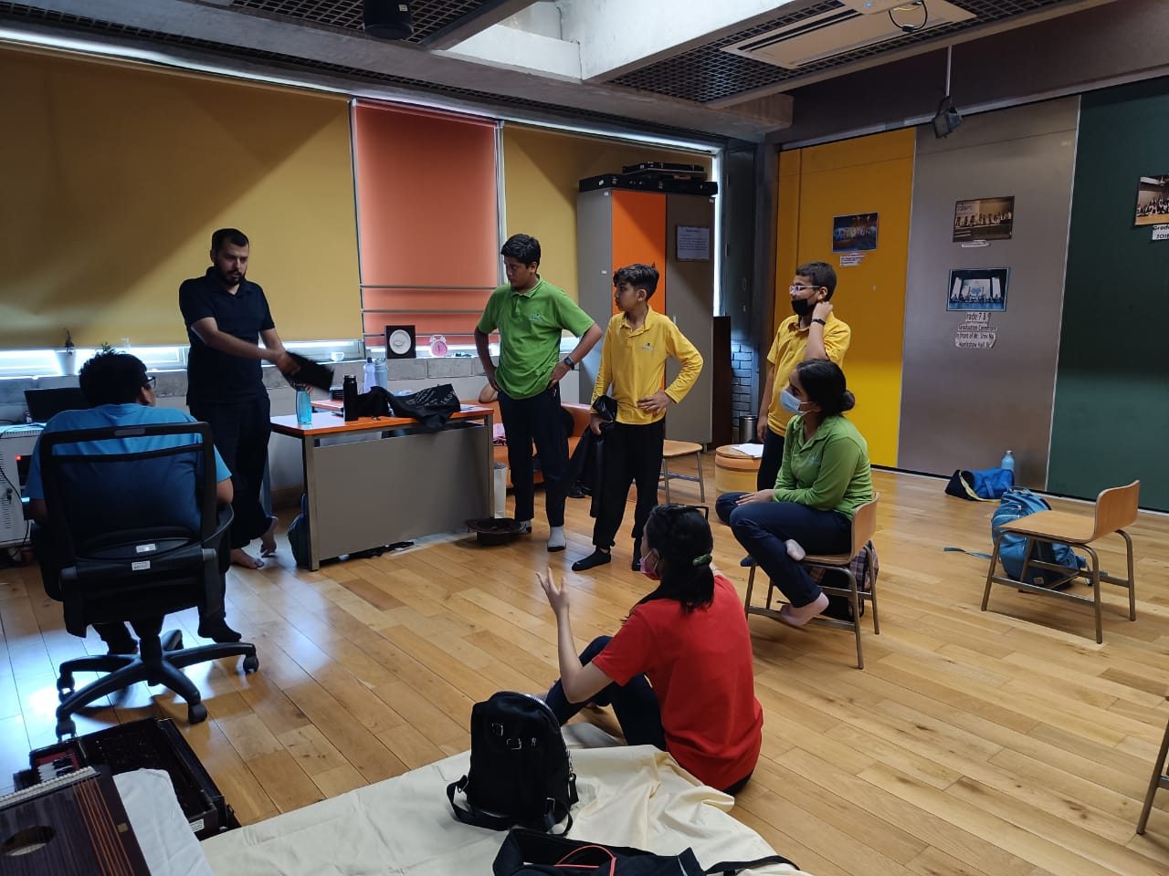 Day 1 was spent in a workshop with Ms Vedi Sinha, who guided the students on how to use sound in their plays. Students were then assigned different genres on which they made short ten minute long plays.