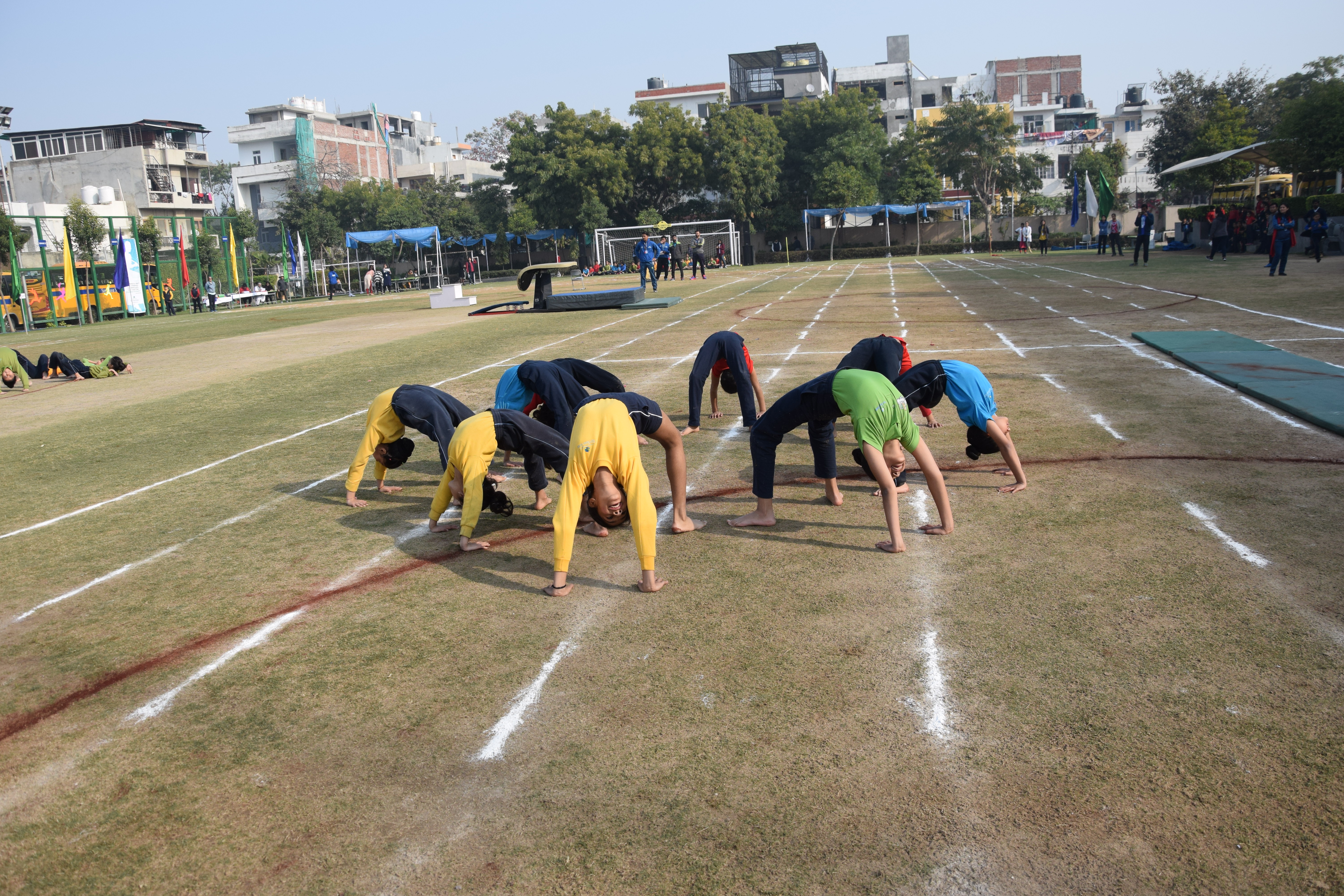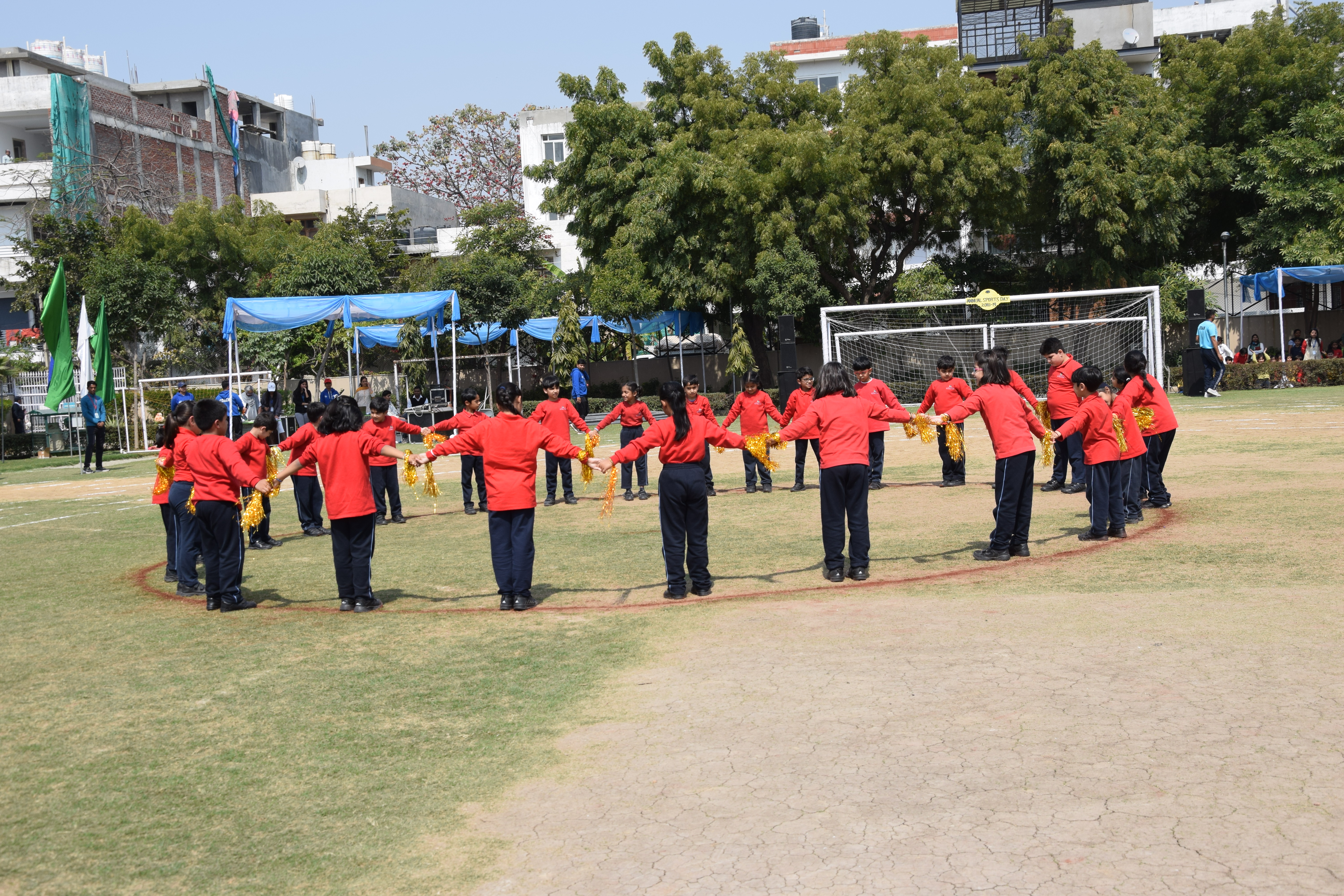 The balmy day at Shiv Nadar school started with the “Athletic meet 2019” for Grade III, IV and V and non - competitive events for Grade I & II. A torch, which is a symbol of knowledge that dispels darkness, was lit by our Primary School Head, Ms. Priya Nanda who then declared the meet open. The young council members and house representatives from the four houses- Lion House, Tiger House, Leopard house and Panther house carried the torch around the field and pledged to imbibe the true spirit of sportsmanship. The students of Grade III, IV and V ran across the field in different races to reach the target line. Every race brought loud cheers from their peers for their friends as well as their houses to motivate and encourage them. The individual events were followed by Gymnastics display which demonstrated concentration, flexibility and balance that is required to perform with grace and agility. It highlighted the importance and need of teamwork to grow and excel together.