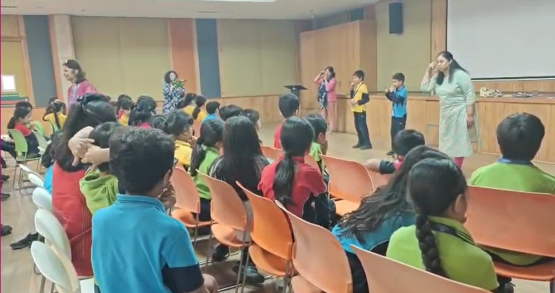 Ms Duggal skillfully wove together captivating narratives in both Hindi and English, concluding her engaging presentation with a melodic song. The session was marked by remarkable student engagement and active participation. Ms Duggal's dynamic approach, incorporating diverse pedagogical techniques such as imaginative paper cutouts, collaborative student and teacher interactions, thought-provoking Q&A segments, clever riddles, and expressive vocal delivery, ensured a vibrant and highly interactive learning environment.
