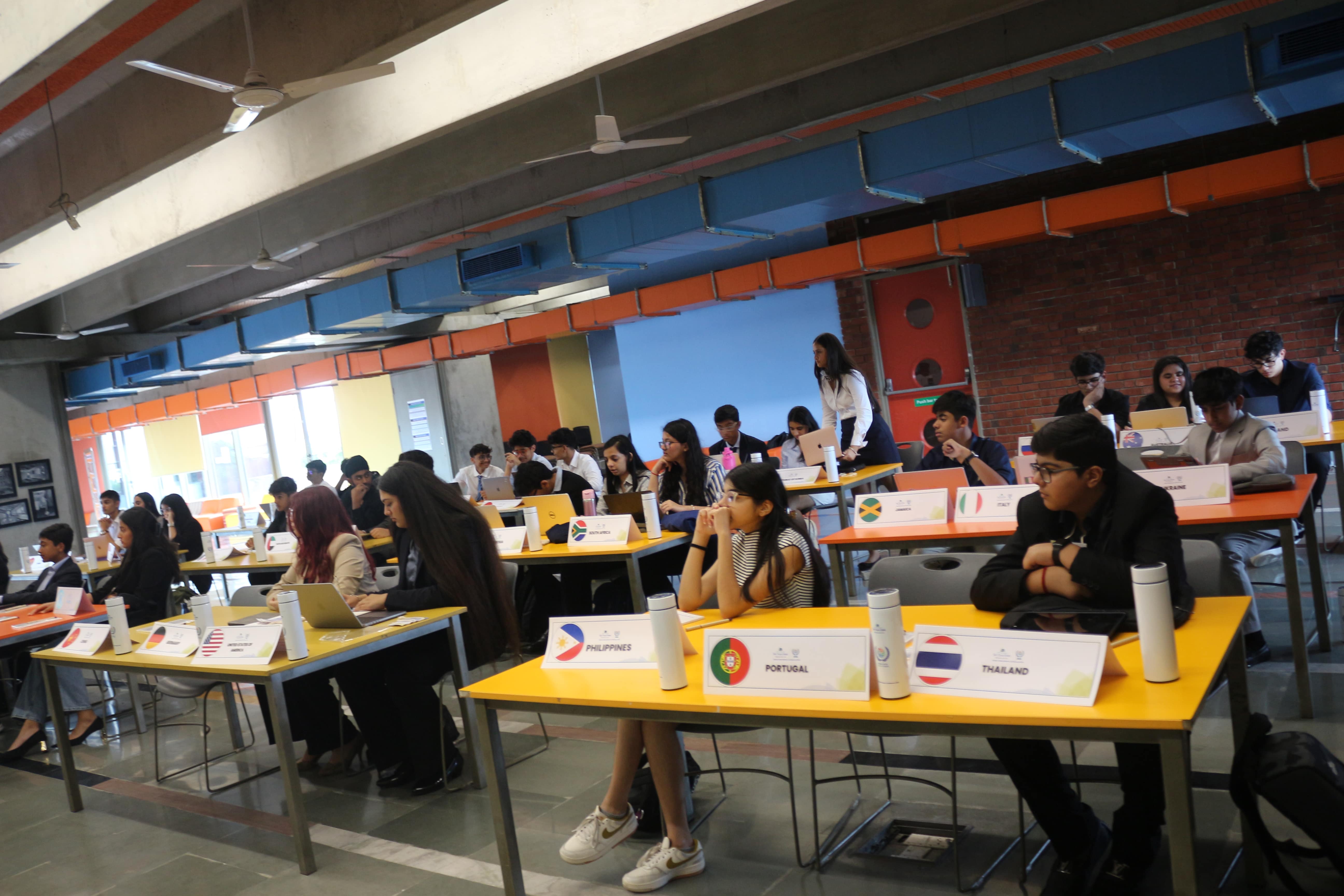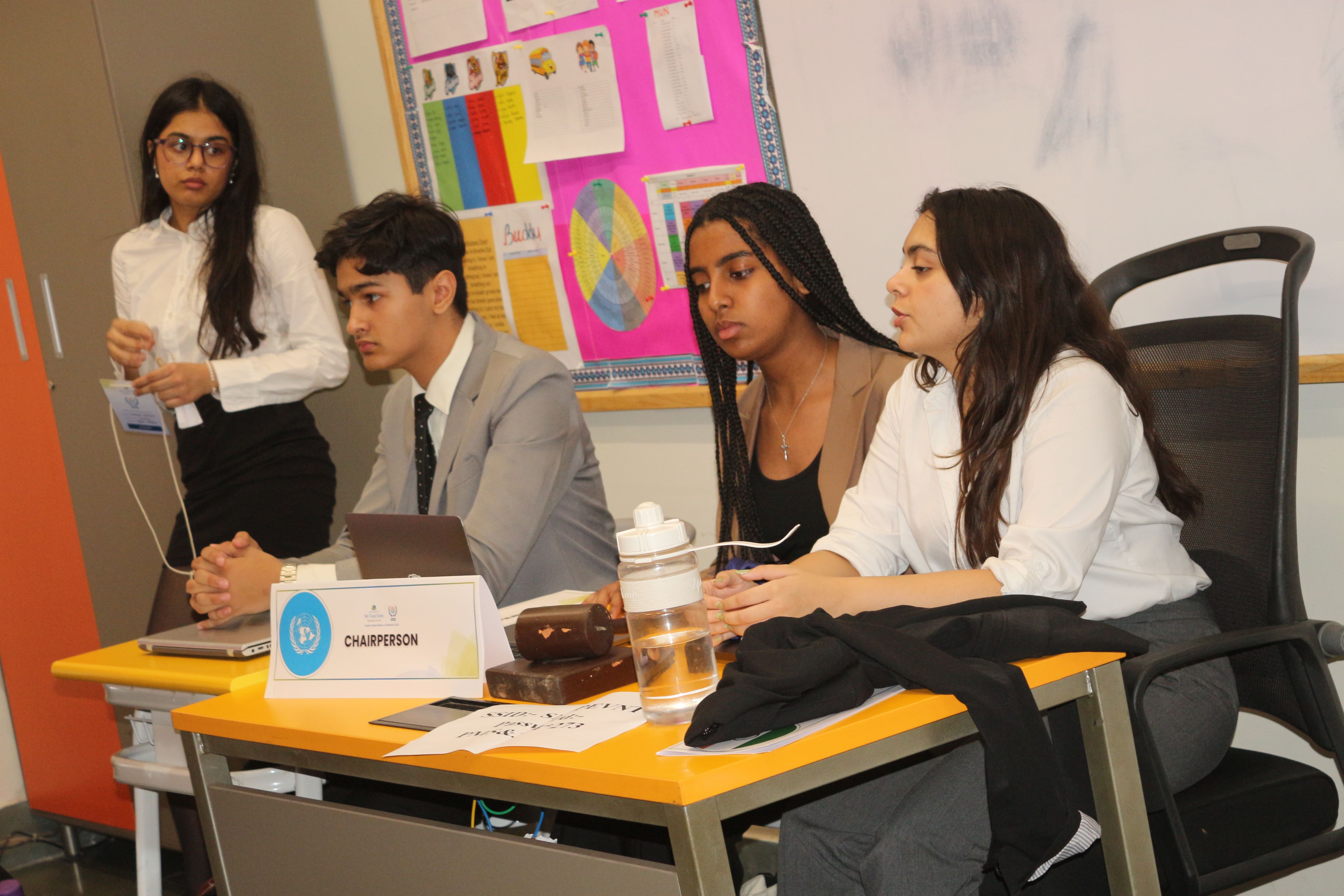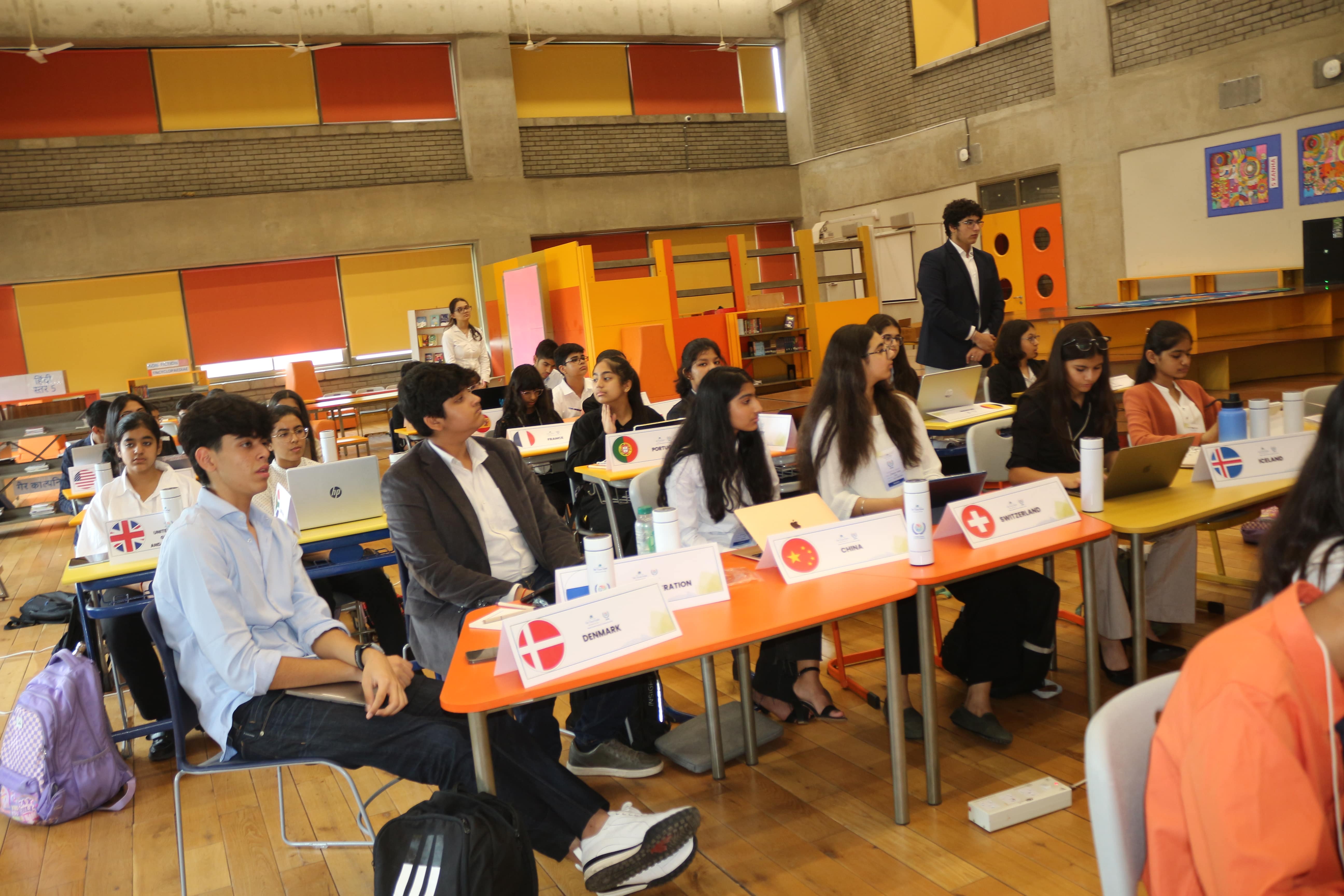 The conference featured six committees—UNEA, UNHCR, UNCSW, WHO, and UNGA—comprising around 200 delegates from schools across Delhi NCR. Chaired by 11 interns from Alma College and senior students from Shiv Nadar School Faridabad, these committees served as vibrant hubs of debate and collaboration.