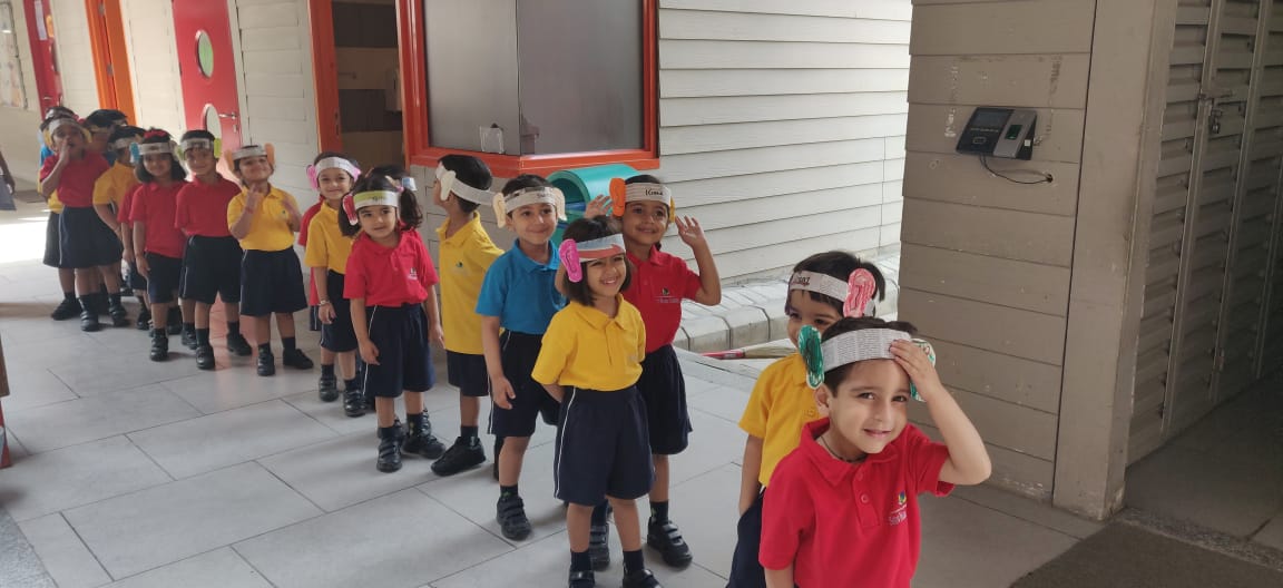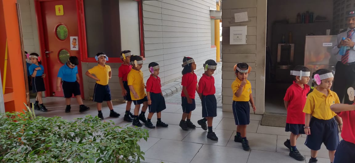 To explore the environment using our auditory senses, the students of Nursery along with their teachers went for a Listening walk in the school premises. The purpose of the walk was to develop their listening skills. The children heard the story ‘The Listening Walk’ by Paul Showers. They put on their listening ears, a piece of craft created with paper cutouts of ears and a hairband and went for a walk within the school premises. They listened to different sounds in the environment and had to identify them. Back in the classroom post a discussion they illustrated the different sounds they heard. An enriching activity, thoroughly enjoyed by the children.
