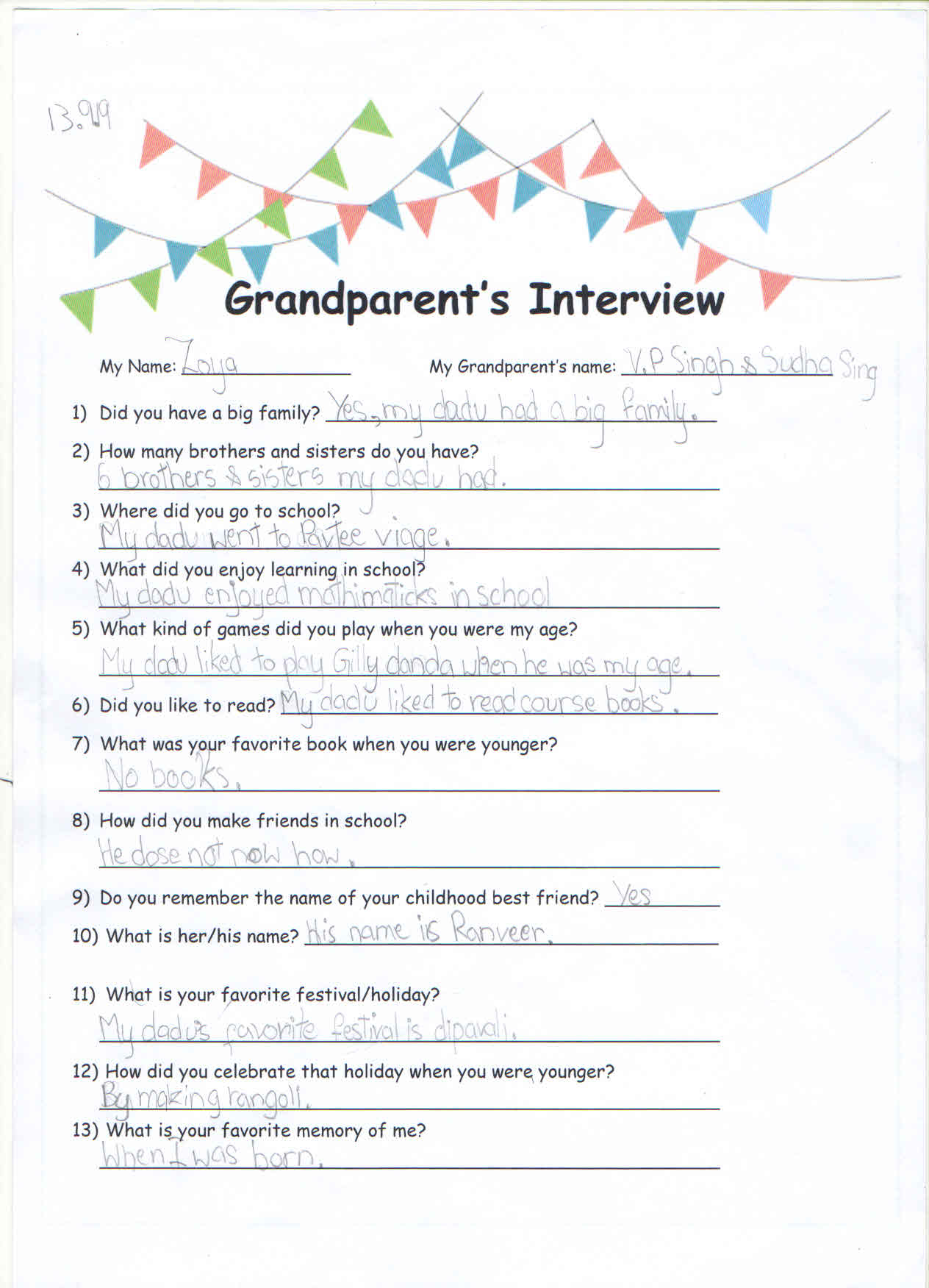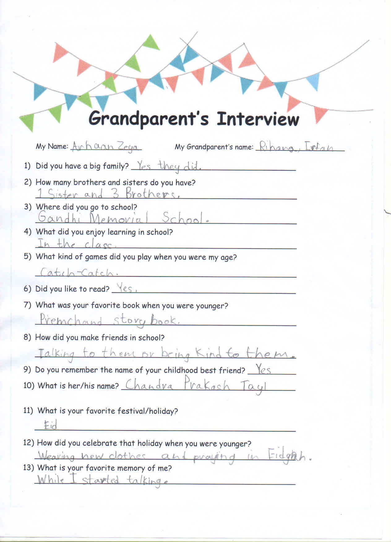 Grandparent’s Day Celebration, Year 2 - September 13, 201
