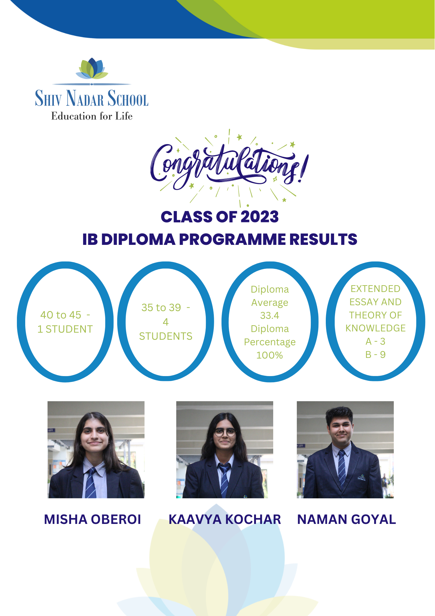 We are delighted to announce that our students of the IBDP Batch of 2023 have made us proud. Our heartiest congratulations to all the students.