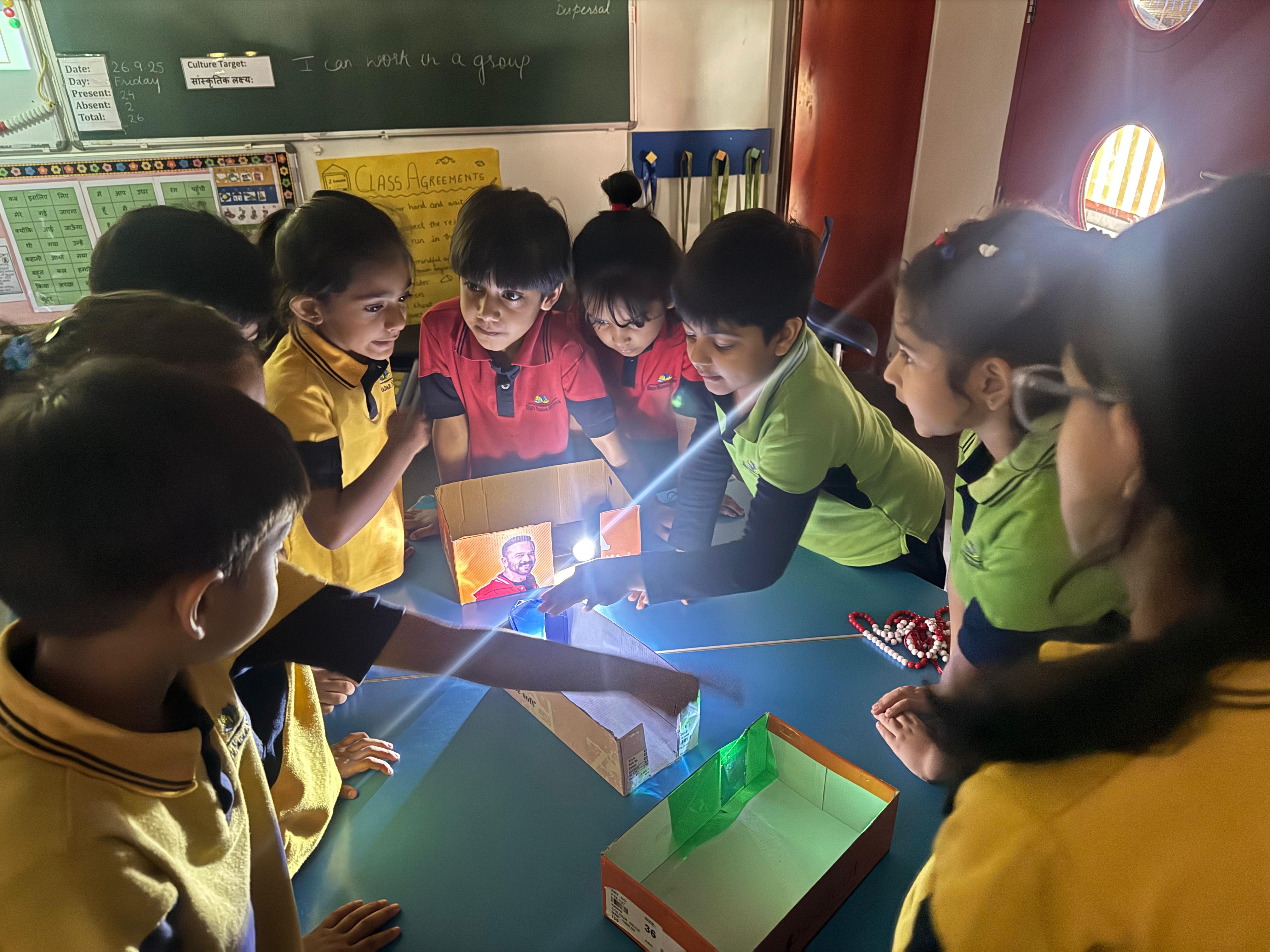 The Grade 2 learners at Shiv Nadar School, Faridabad concluded their exploration of the theme ‘Light’ with an engaging hands-on project that beautifully blended creativity, problem-solving, and scientific inquiry on 26th September 2025.