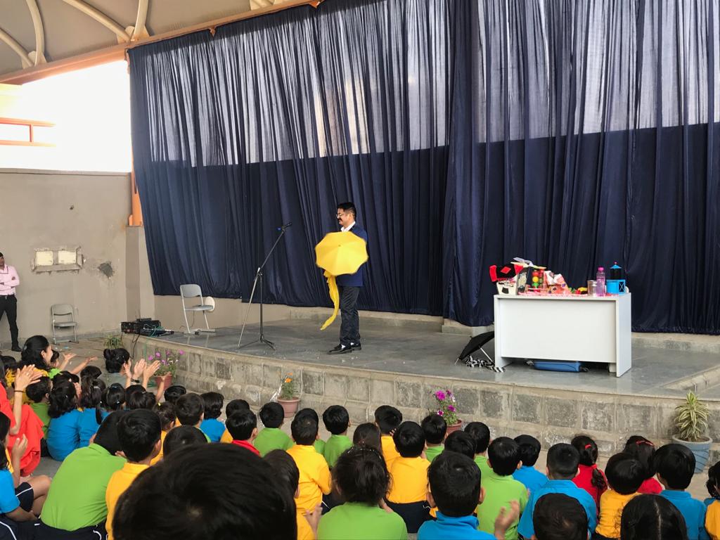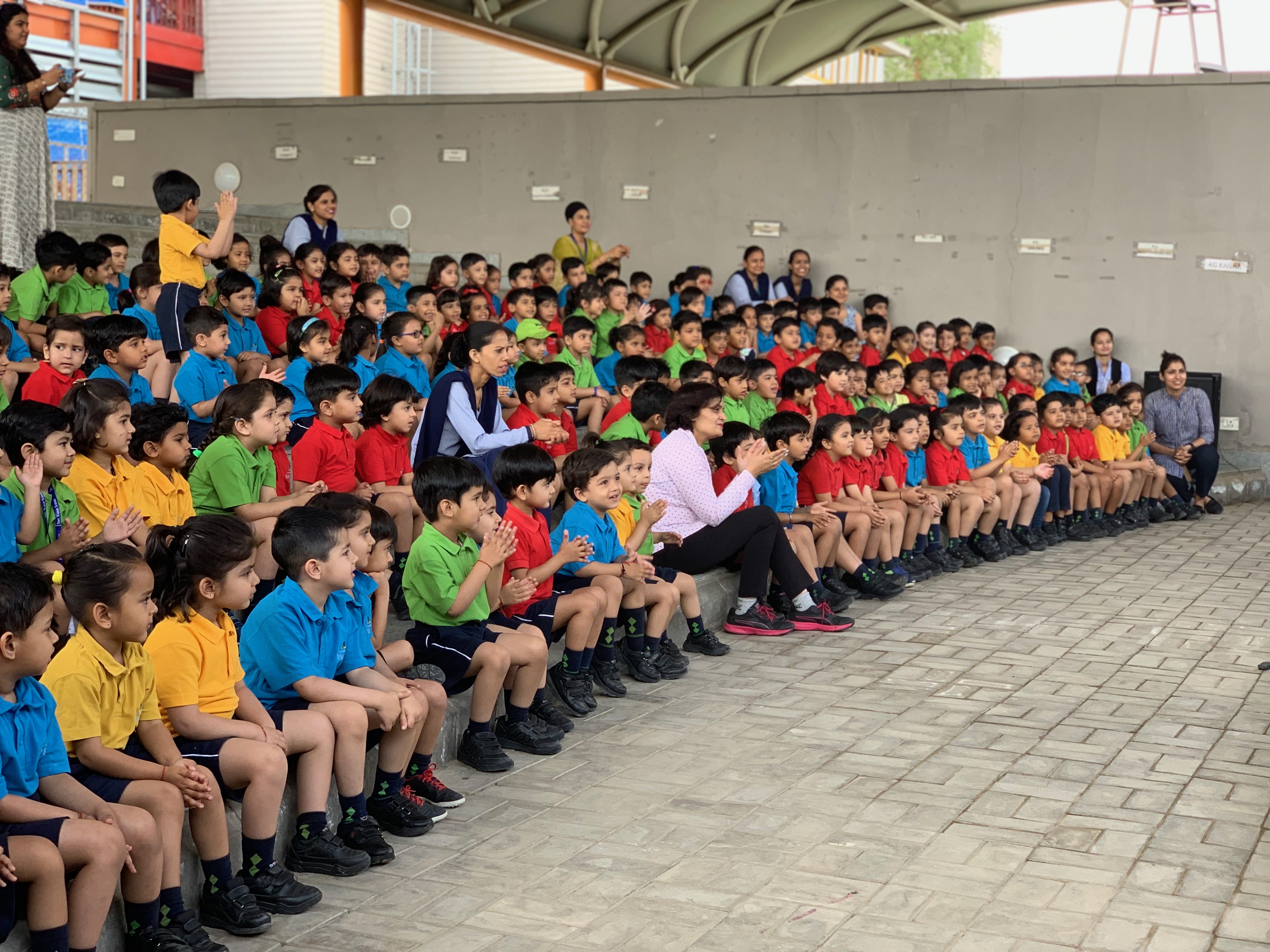 Our Kindergarteners were happy to be back at school and we were delighted to see all the children well settled in their homerooms. They warmly welcomed their old and new friends and enthusiastically participated in all the activities during the day. As a part of getting to know each other they played 'Name Game', listened to the story of Chrysanthemum and made a craft depicting themselves and as always all of them had a fabulous time playing at the outdoors.