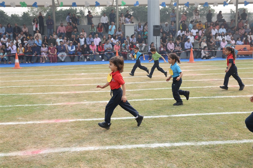 With high spirits and energy, the Early Years successfully concluded their Annual Sports Day 2023 which revolved around the theme ‘We love Animals’. After days of dedicated practice, our young learners enthusiastically performed various activities where they honed their skills in agility, balance, orientation, rhythm, and reaction. The event commenced with an opening address from our Director Principal, Ms. Anju Wal followed by a warm welcome and felicitation of our Chief Guest, Mr. Karan Vashisht. The children from all three grades showcased their physical development through Music and Movement performances. Different theme-based races were curated, which were age-appropriate. It was a pleasure to see all the children participate with zeal and ardour. The event concluded with a true spirit of sportsmanship as the children participating were all recognized as winners and awarded a gold medal.