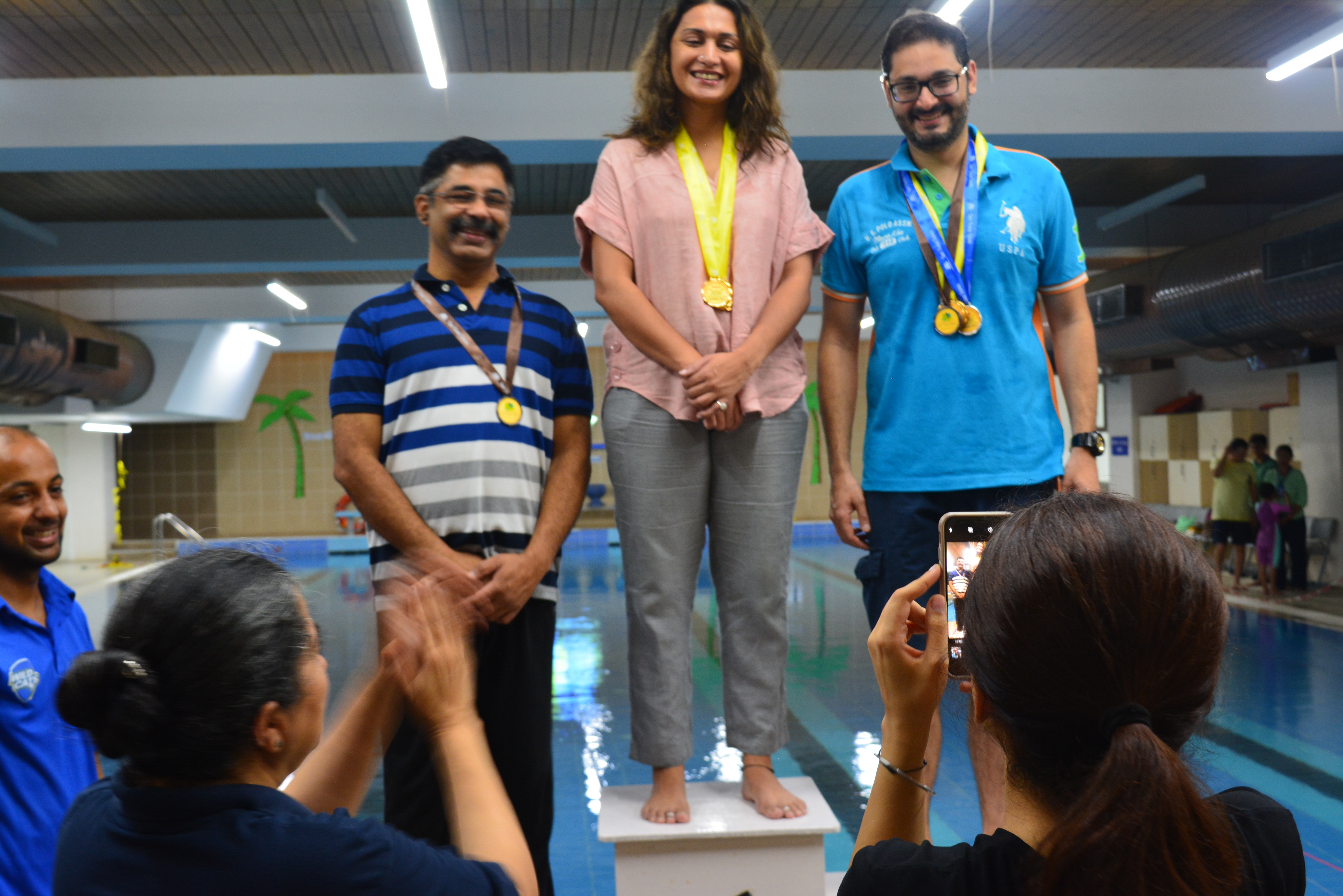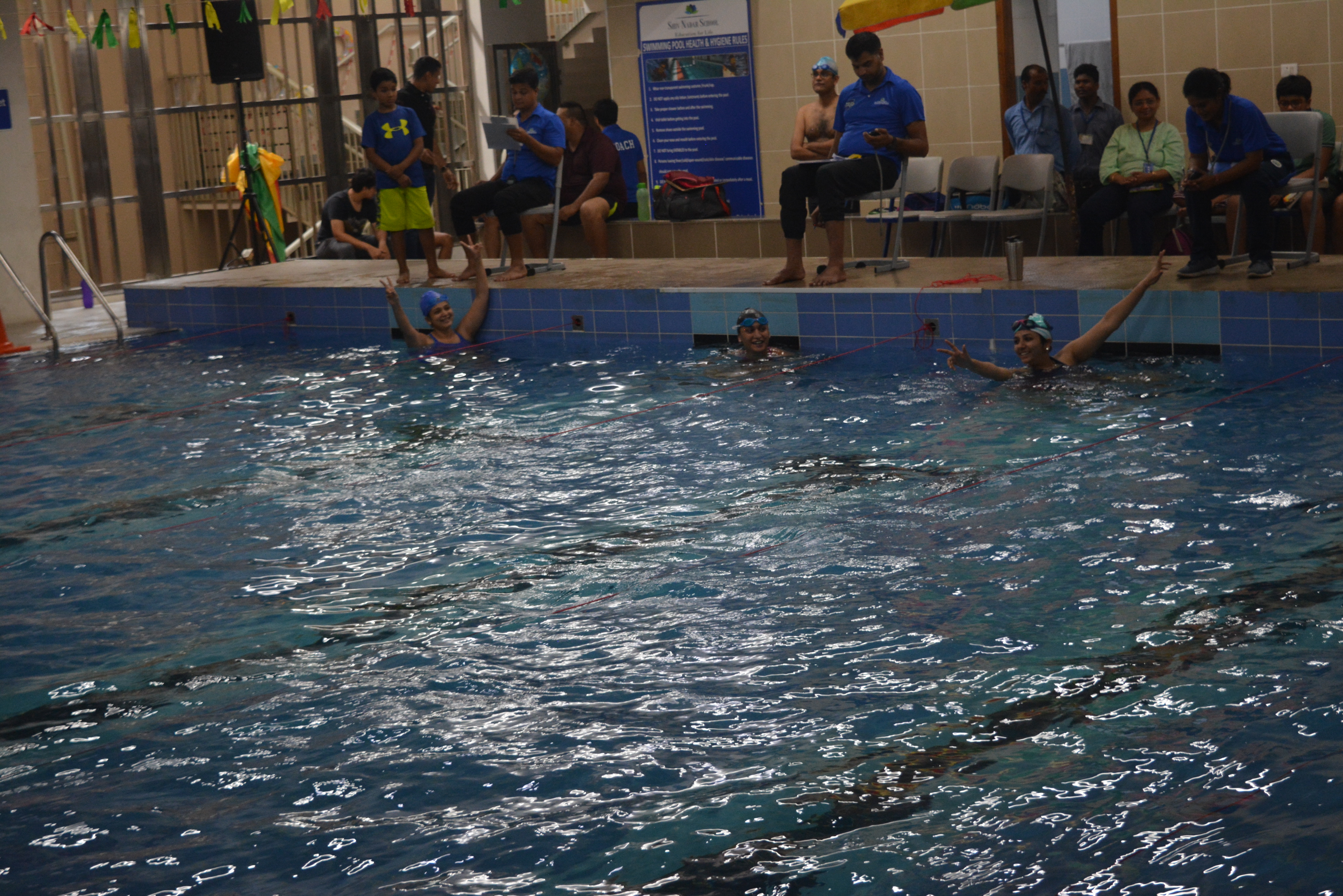 Shiv Nadar School, Noida hosted the Swimming Meet for the Parents on Saturday, 06th July 2019 as part of the Parent Partnership Program. The event started at wee hours of a Saturday Morning with an overwhelming response from the parents. They participated in different categories such as Freestyle, Breast Stroke and Back Stroke for both male and female participants. A token of appreciation was given to the winners by Principal Ms. Shashi Banerjee.