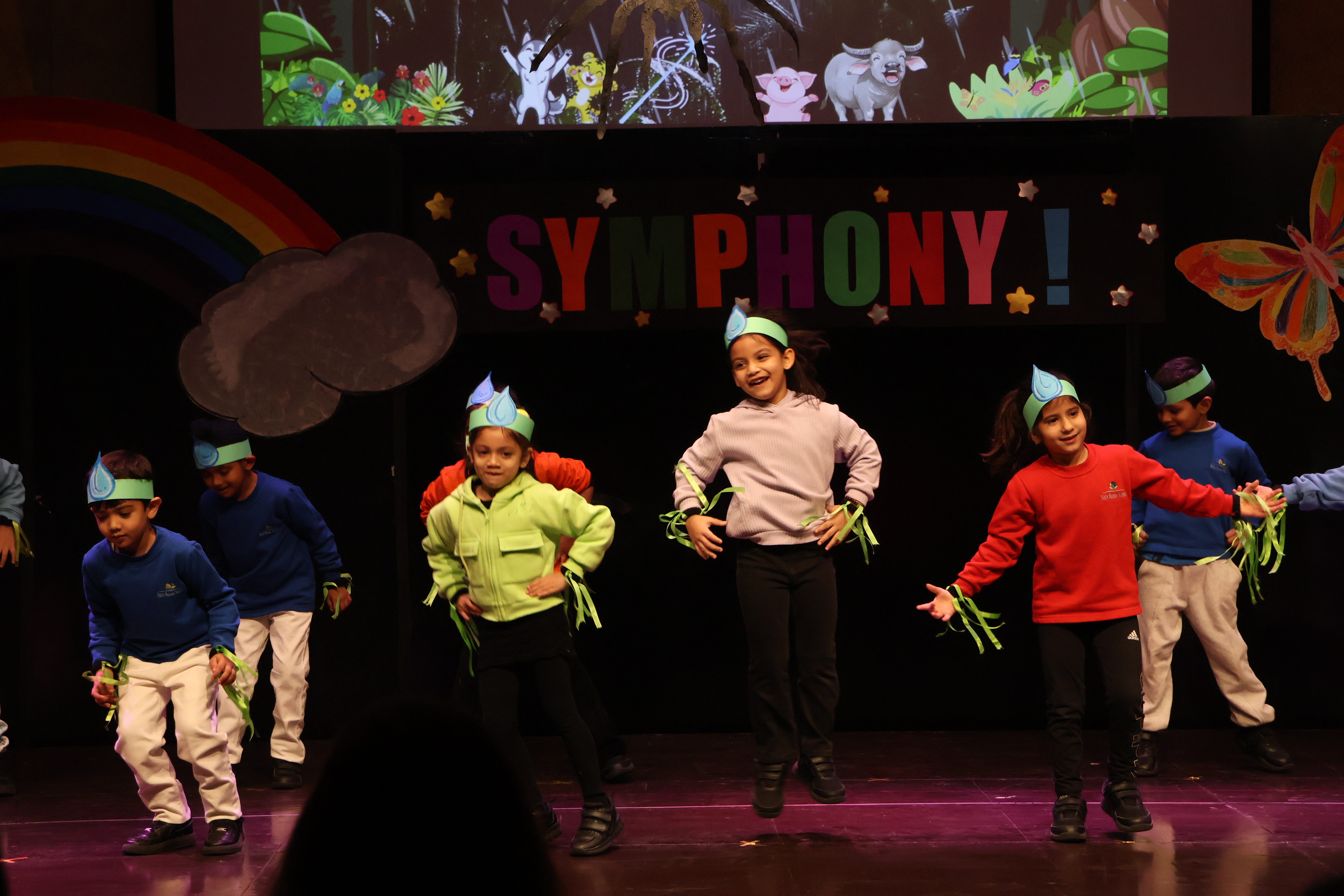 The Nursery students presented this theme through a delightful musical performance that truly reflected the innocence and wonder of early childhood. The programme was a seamless blend of dance, songs, rhythm, movement, and colours, making it a true symphony of imagination and love. The student’s joyful singing in rhythm and synchronised tones, paired with their energetic and expressive dancing, brought the stage alive and kept the audience thoroughly engaged.